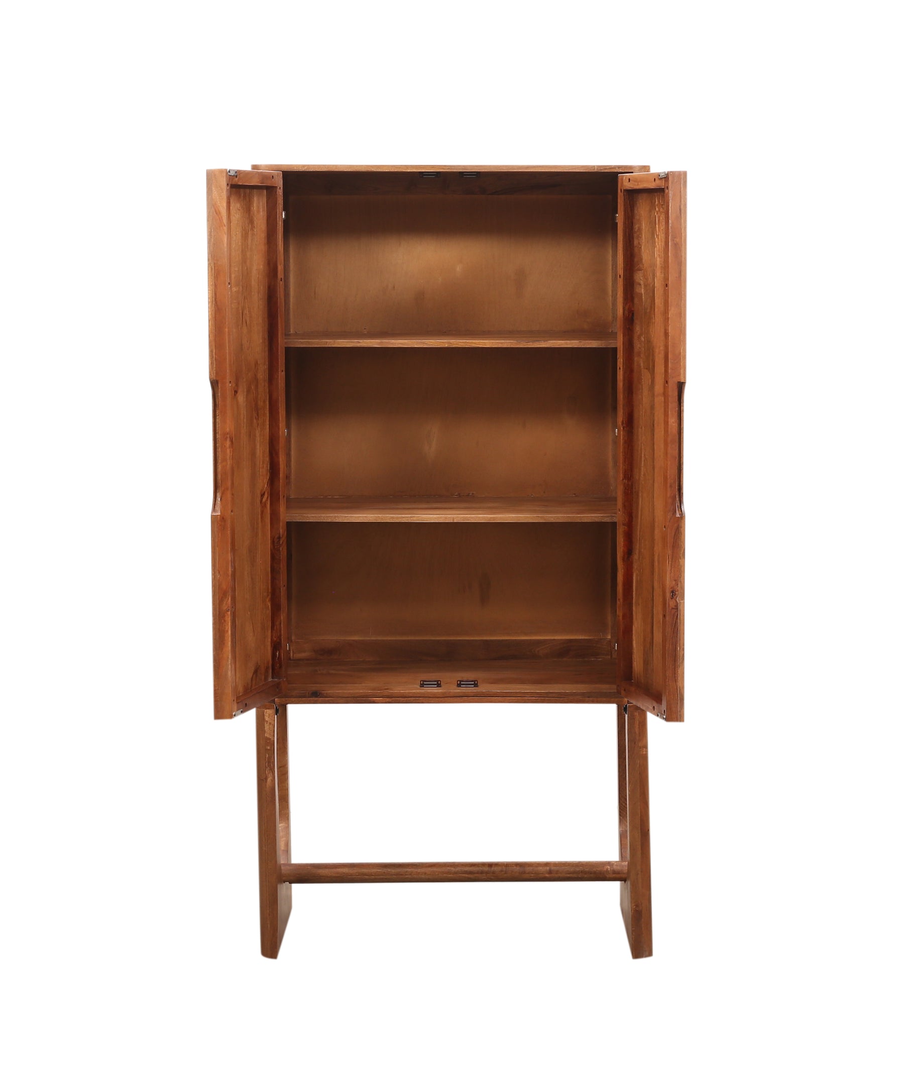Elevate your entertaining space with the Fox & Roe Breton Bar Cabinet, a stunning blend of form and function. Crafted from solid walnut wood with a sophisticated distressed finish, this modern piece brings timeless character to any room. Three generous shelves provide ample display and storage for your favorite spirits, glassware, and bar essentials. The sleek design complements contemporary and transitional décor while the rich wood grain adds warmth and depth. Whether you're a collector or casual host, this cabinet transforms your bar setup into a stylish focal point that impresses guests and keeps everything within reach.