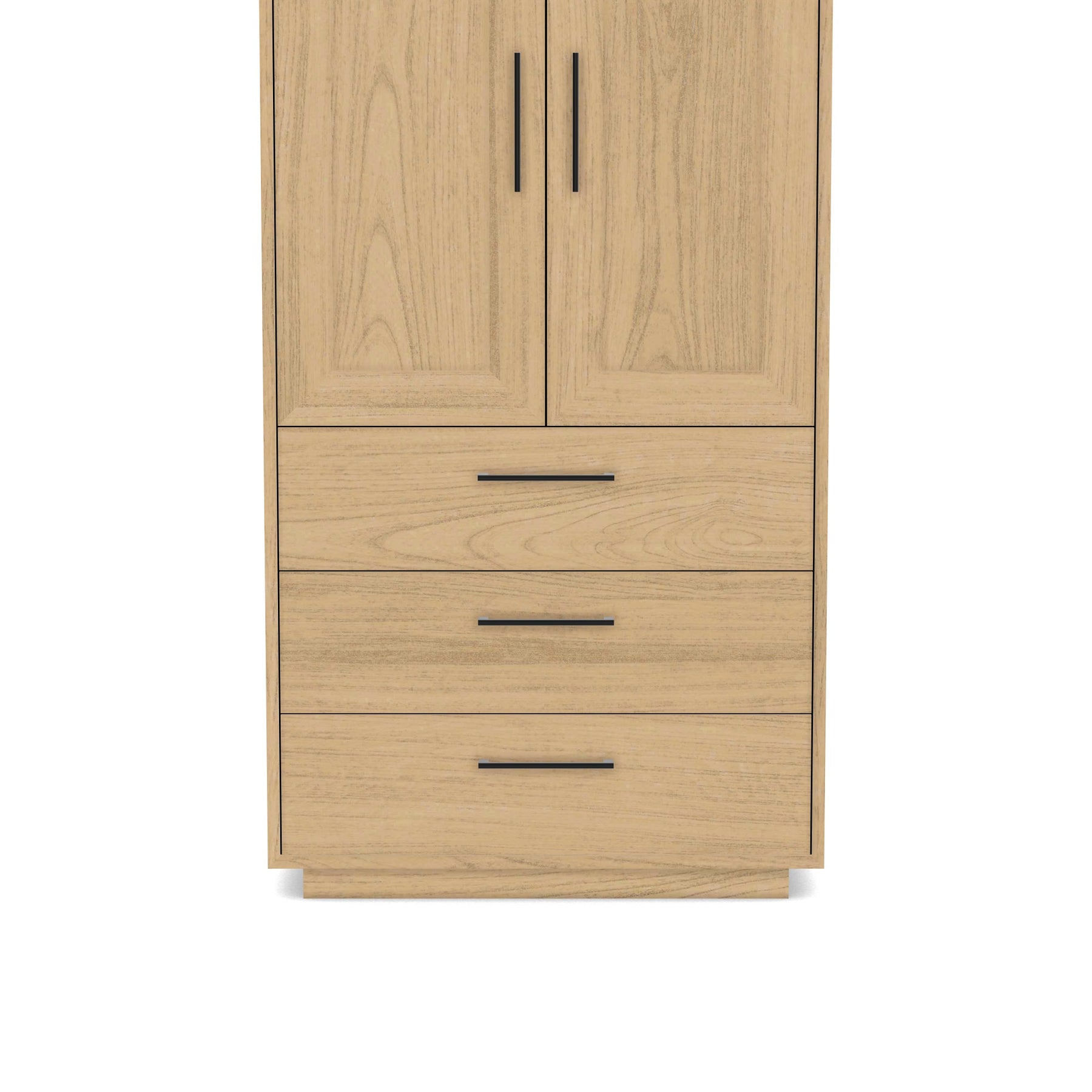 The Gat Creek Custom Furniture Amelia Armoire is crafted from locally and sustainably harvested Appalachian hardwood, kiln-dried and carefully selected for its distinctive grain and color. Each piece is built-to-order by a skilled craftsperson who signs and dates the armoire, ensuring unique quality. The meticulous board-by-board finishing process brings out the natural beauty of the wood, while the catalyzed lacquer topcoat provides a clear, durable protective barrier that preserves a close-to-the-wood feel. This armoire offers timeless elegance and lasting craftsmanship for your home.