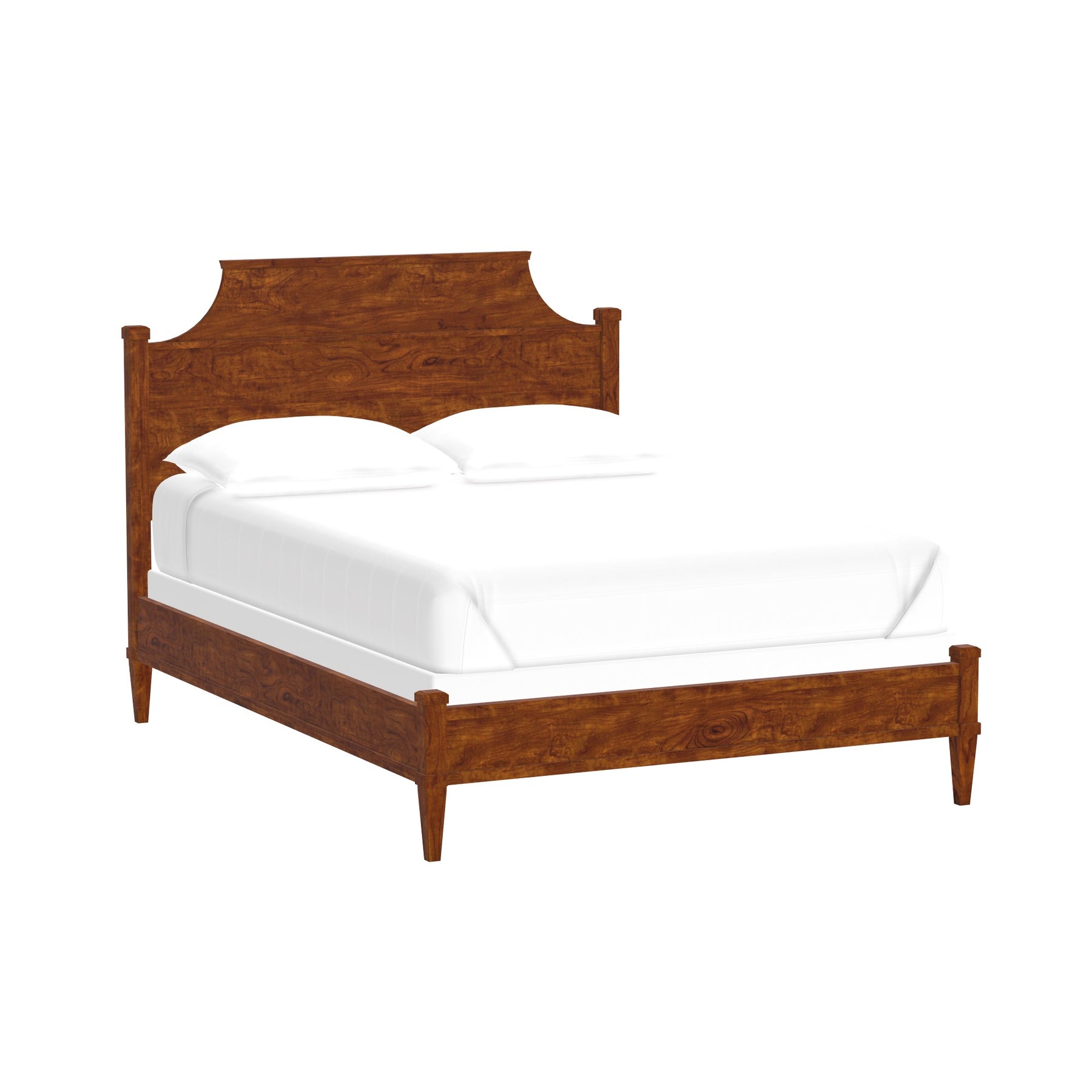 The Gat Creek Custom Furniture Kelly Bed is crafted from locally and sustainably harvested solid Appalachian hardwood, kiln-dried and hand-selected for its unique grain and color. Each bed is built-to-order by a skilled craftsperson who signs and dates the piece, ensuring a one-of-a-kind creation. The board-by-board finish process enhances the natural beauty of the wood, while the catalyzed lacquer top coat provides a clear, durable protective barrier with a close-to-the-wood feel. This bed combines lasting quality with refined craftsmanship for a stylish and sustainable bedroom centerpiece.