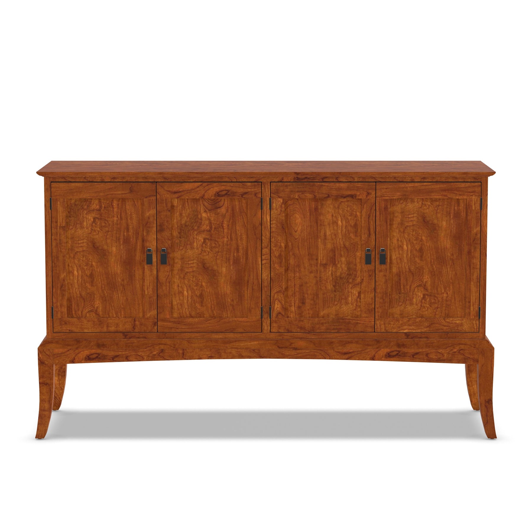 The Gat Creek Custom Furniture Sabin Four Door Server is crafted from sustainably harvested Appalachian hardwood, kiln-dried and carefully selected for its distinctive grain and color. Each server is built-to-order by a skilled craftsperson who signs and dates the piece, ensuring a unique and authentic creation. The board-by-board finishing process enhances the natural beauty of the wood, while the catalyzed lacquer top coat provides a clear, durable protective barrier that maintains a close-to-the-wood feel. This server offers timeless craftsmanship and lasting elegance for your home.