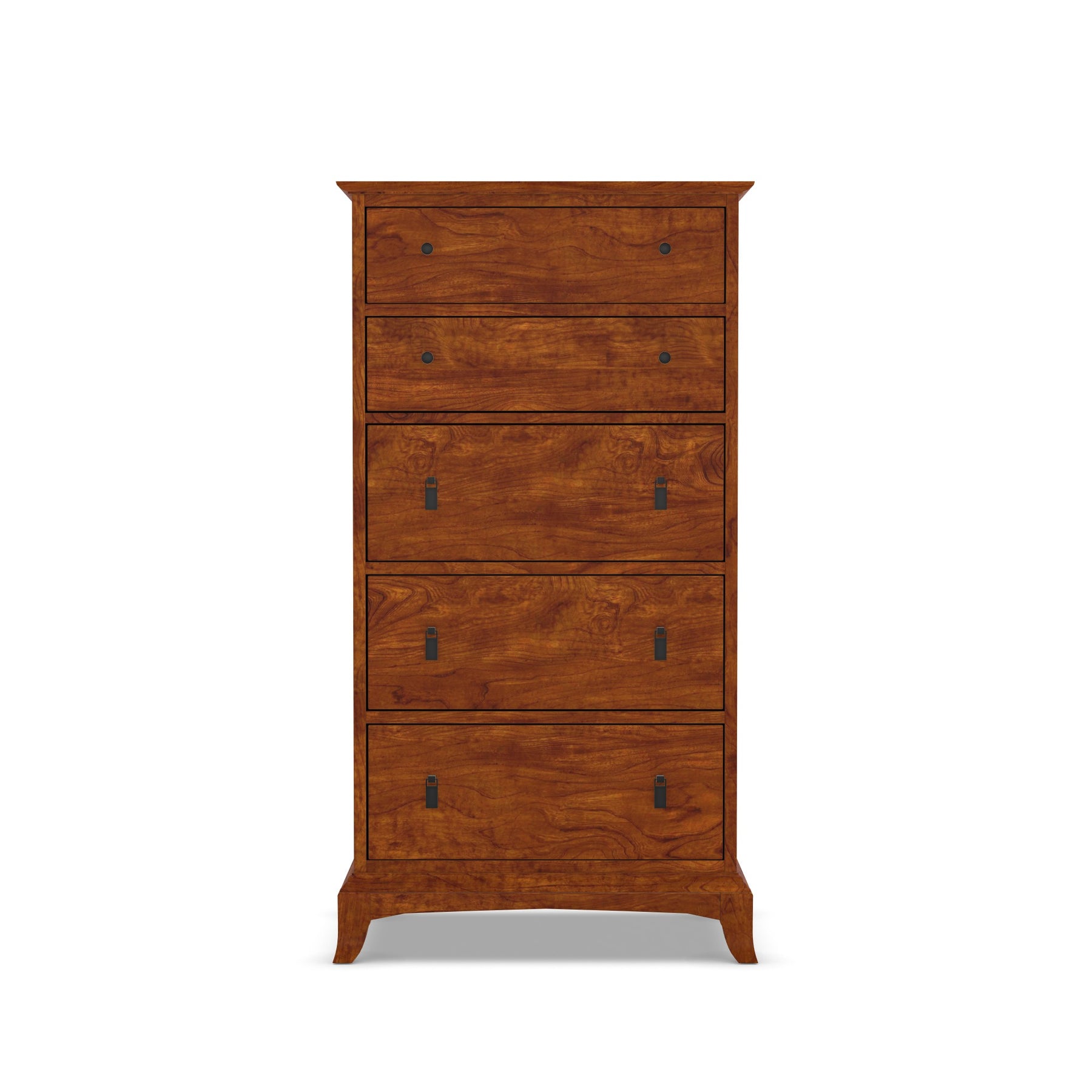 The Gat Creek Custom Furniture Sabin Lingerie Chest is expertly crafted from locally and sustainably harvested solid Appalachian hardwood. Each piece is made from kiln-dried lumber, carefully hand-selected for its unique grain and color. Built-to-order by a skilled craftsperson who signs and dates the chest, it features a detailed board-by-board finish that brings out the natural beauty of the wood. The catalyzed lacquer top coat creates a clear, durable protective layer that preserves the wood’s authentic texture, offering a blend of elegance and lasting quality.