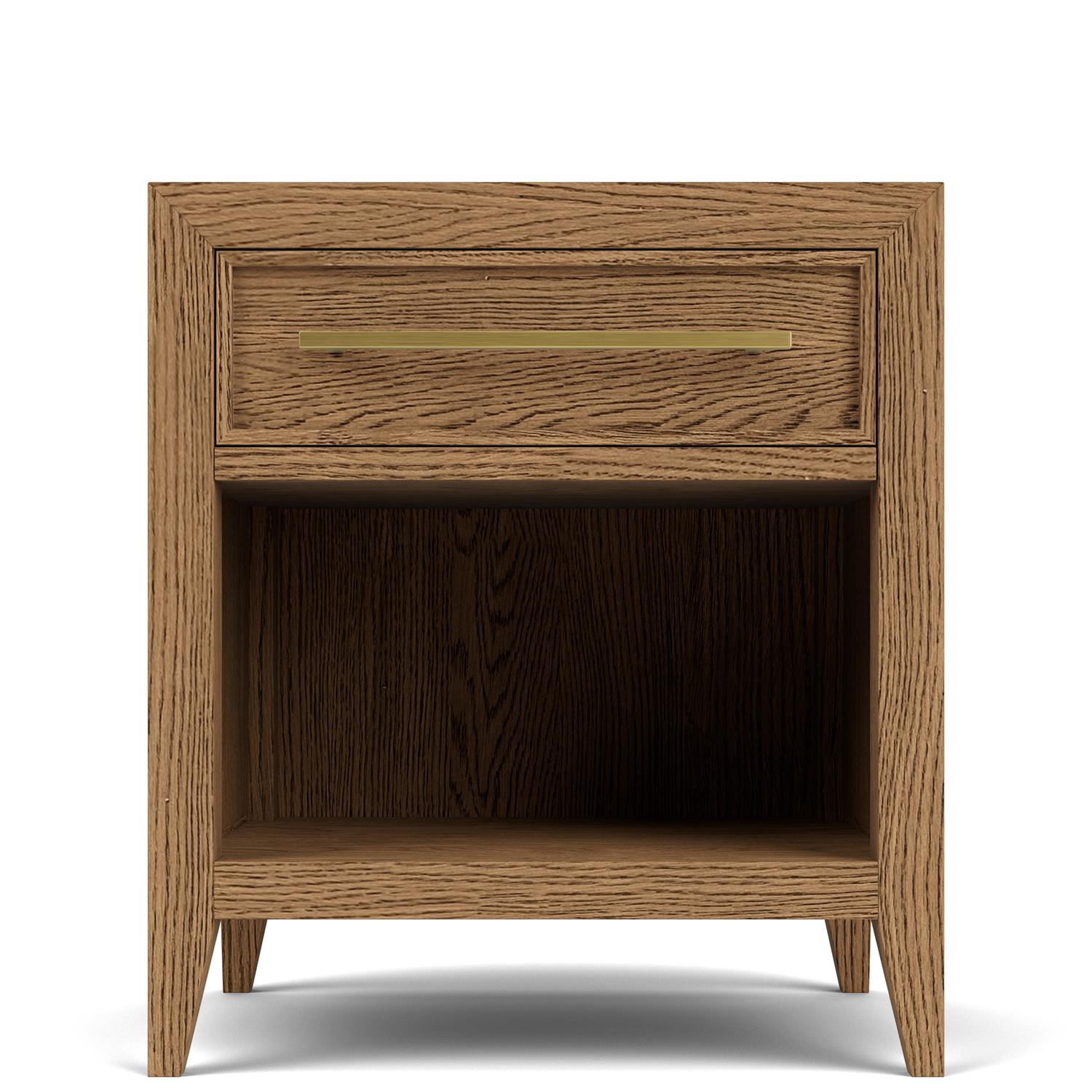 Experience the convenience and sophistication of the Halbrooke One Drawer Nightstand by Riverside Furniture. Constructed of durable Oak solids and Random Matched Oak veneers, this nightstand features a stunning nutmeg oak finish. Plus, with a dual USB/USB-c power outlet mounted on the back, you can easily charge your devices and eliminate cord clutter. Upgrade your bedroom today!