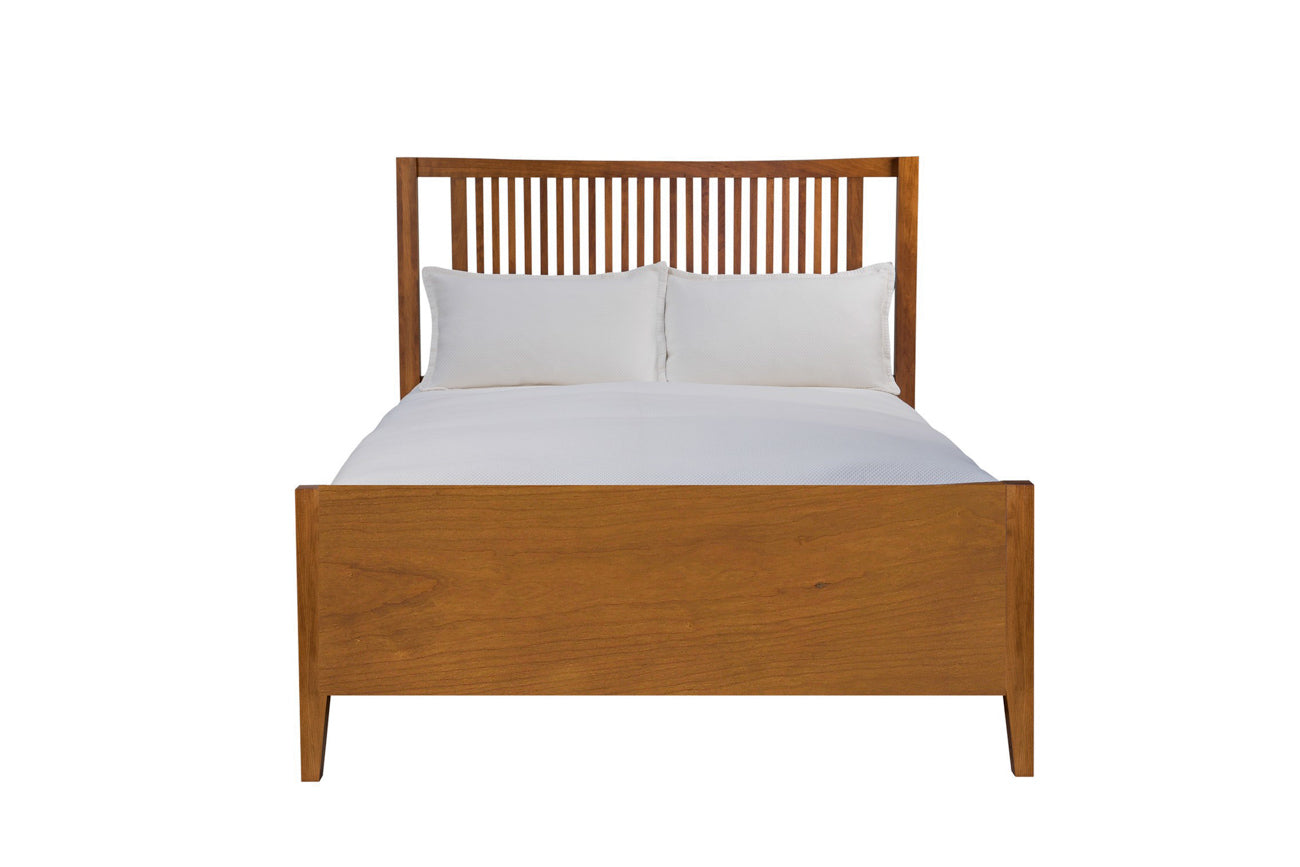 The Mavin Amish Custom Furniture Atwood Queen Spindle Bed offers classic charm with modern customization. Choose from nine solid wood options like Maple, Walnut, or Rustic Cherry, each available in a variety of stains, paints, and glazes to perfectly complement your bedroom. Personalize your bed further with finishing touches such as two-tone color, paint rub, burnishing, and elegant nailhead finishes. Crafted entirely in the USA, this spindle bed combines quality craftsmanship with timeless design. Begin creating your custom Mavin masterpiece today with Head Springs Depot.
