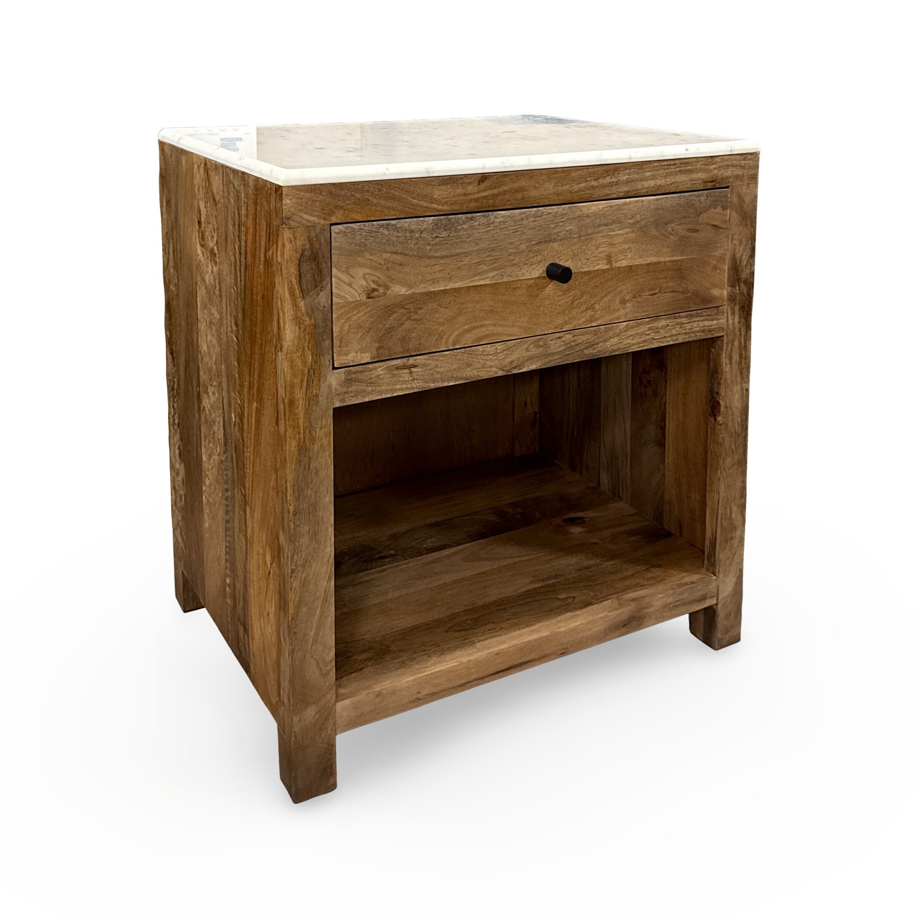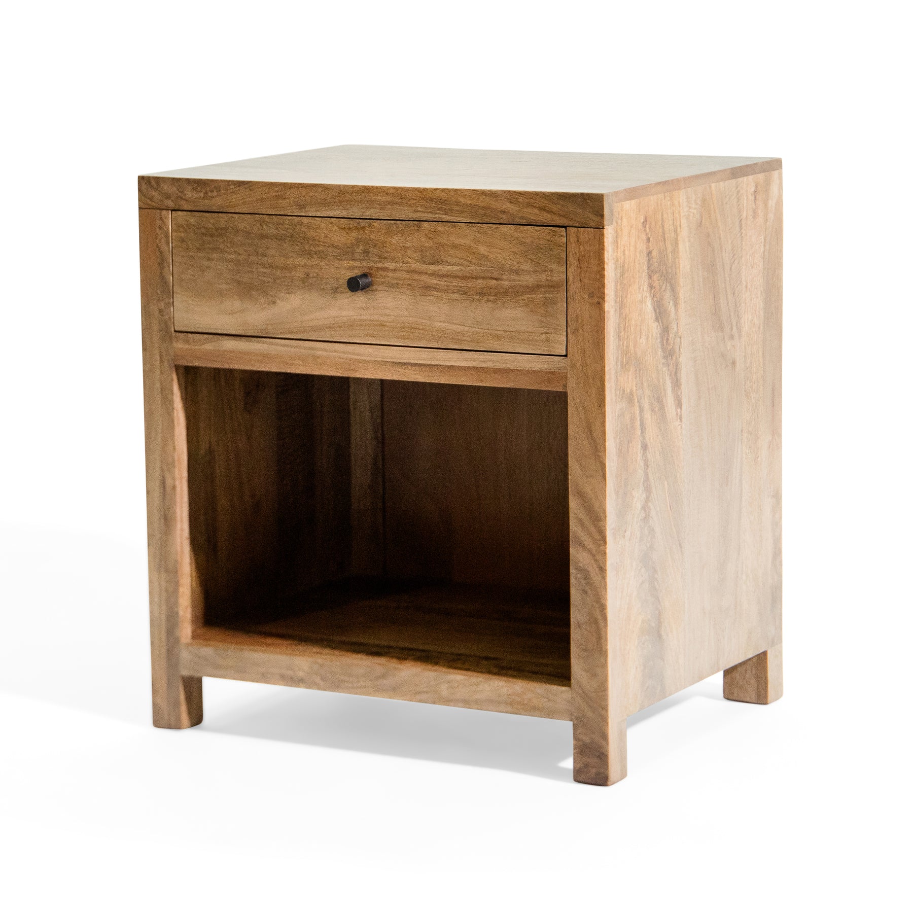 Transform your bedroom into a stylish oasis with The Fox & Roe Corwin One-Drawer Nightstand. Crafted from mango wood and featuring a washed walnut finish, this piece is part of the stunning Corwin Collection. Experience the perfect blend of functionality and elegance.