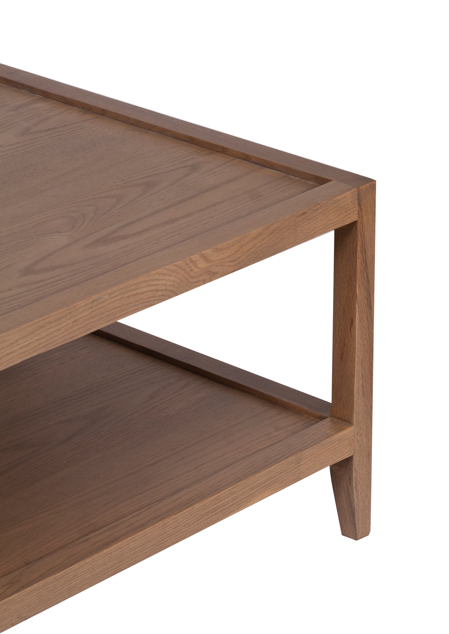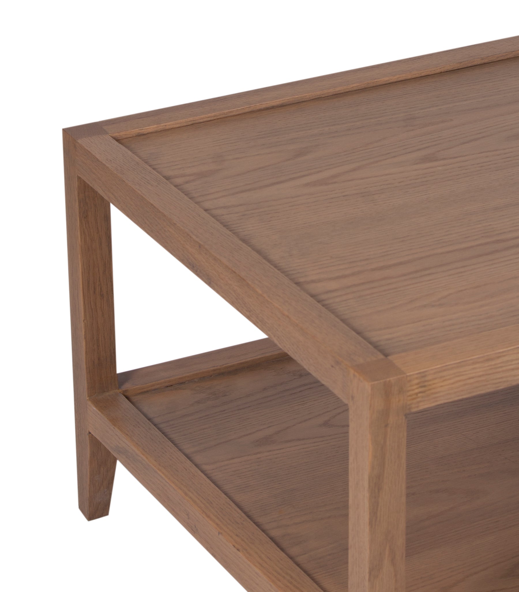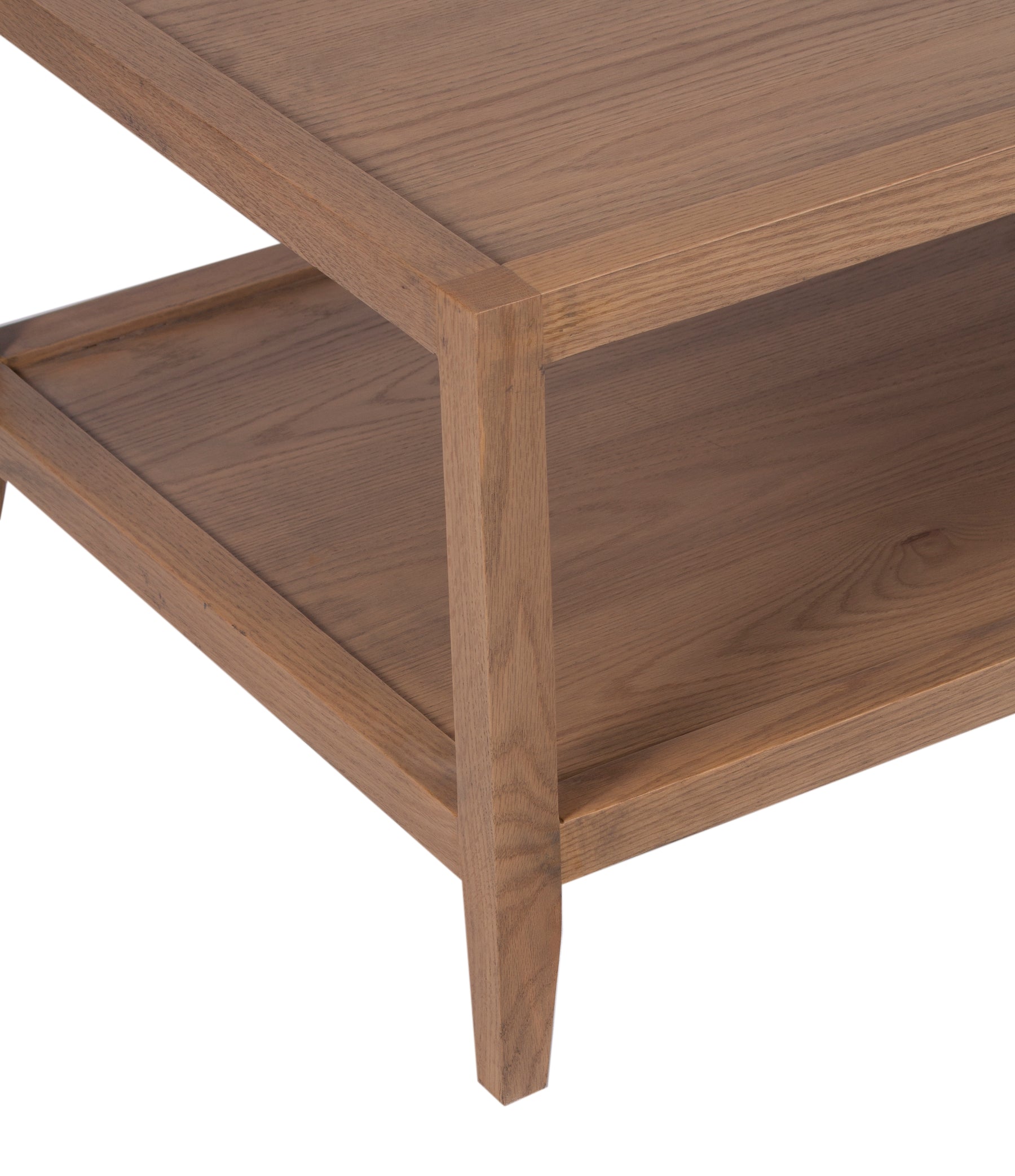 The Fox & Roe French Contemporary Rectangular Coffee Table combines a sturdy red oak frame with a grey wash oak veneer top, offering a stylish centerpiece for any living space. Its elegant design enhances both modern and traditional interiors with functional beauty.
