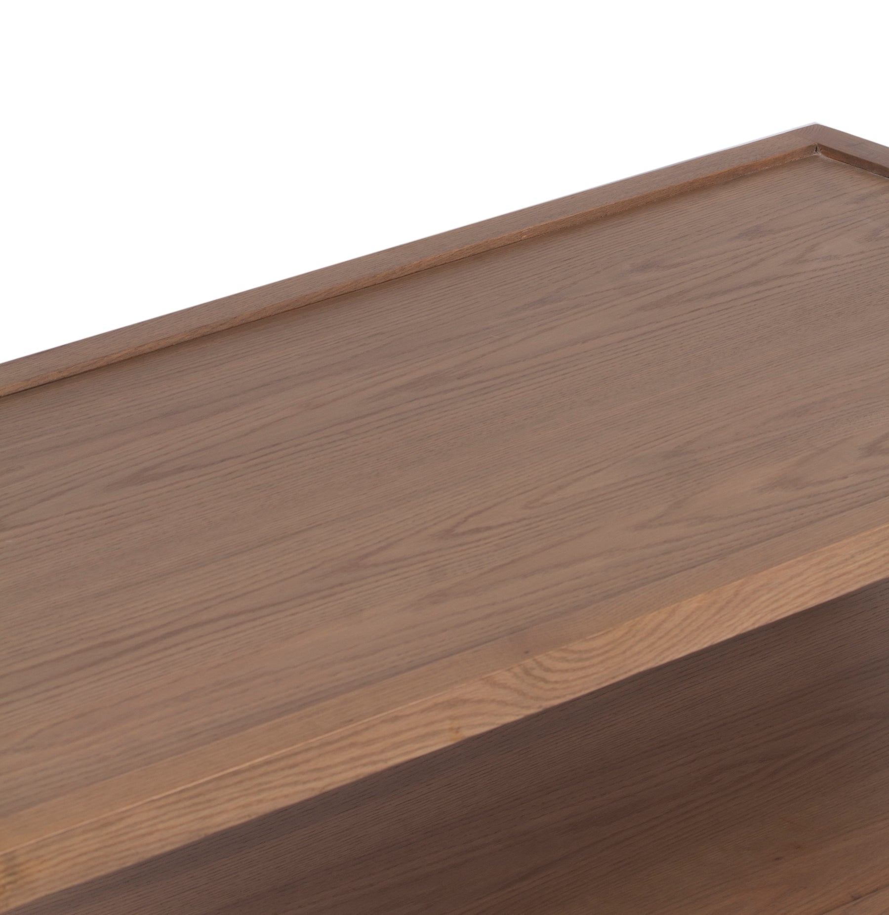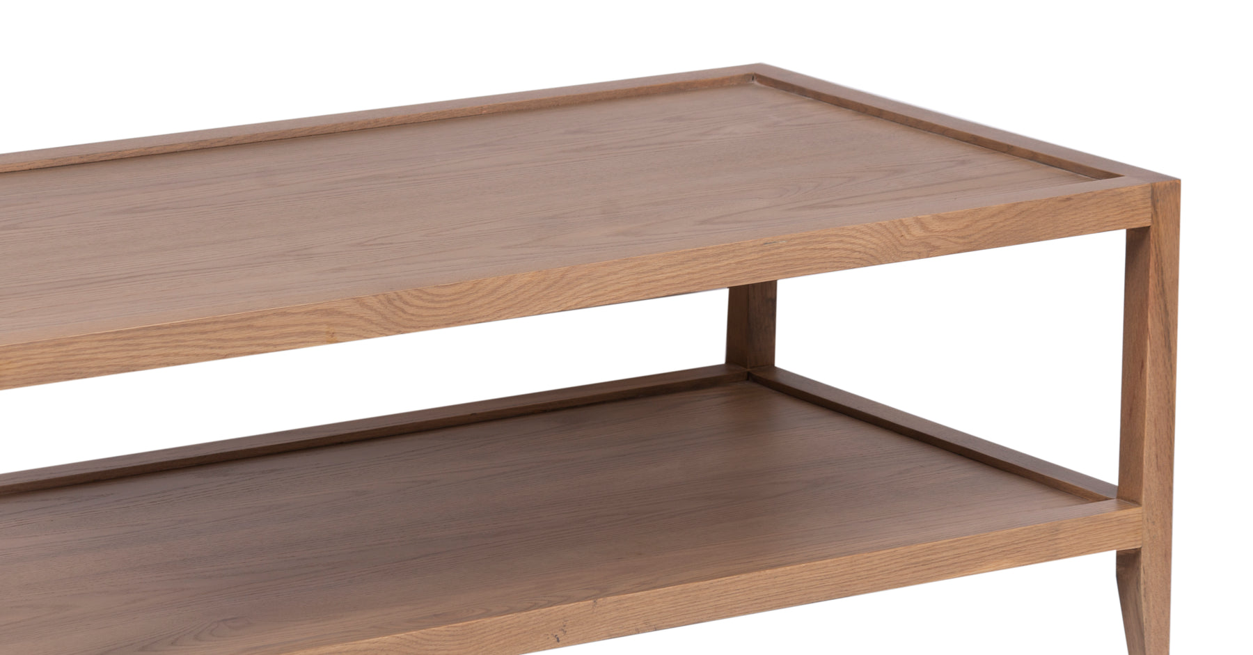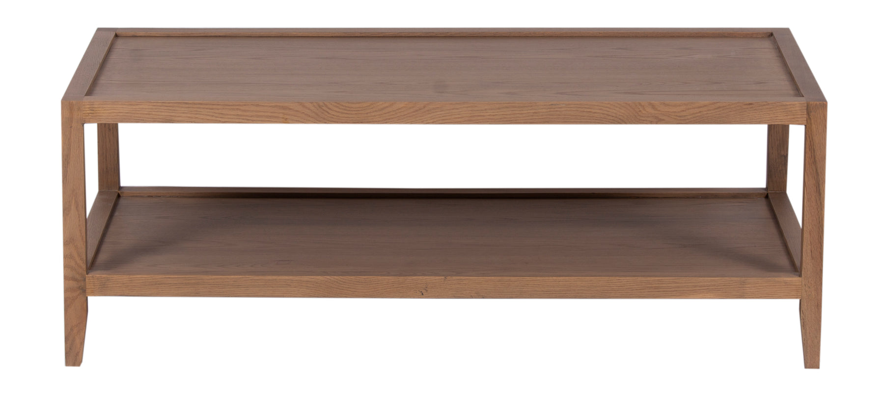 The Fox & Roe French Contemporary Rectangular Coffee Table combines a sturdy red oak frame with a grey wash oak veneer top, offering a stylish centerpiece for any living space. Its elegant design enhances both modern and traditional interiors with functional beauty.