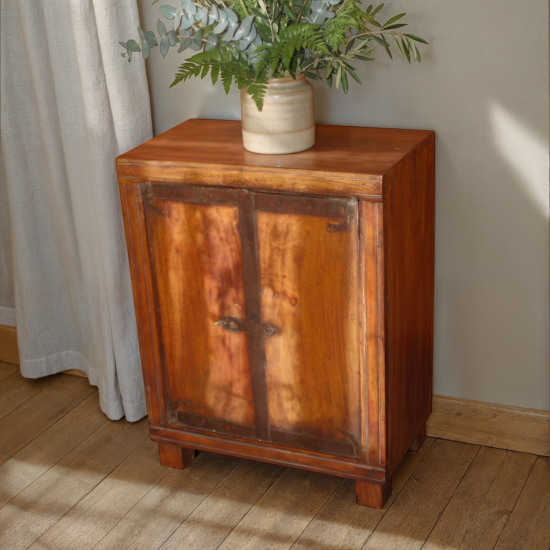 Elevate your bedroom with this striking wooden bedside table that seamlessly blends rustic charm with modern sophistication. Handcrafted from quality wood and accented with sleek metal details, this one-of-a-kind piece brings character and functionality to your space. The sturdy construction provides reliable storage for your nighttime essentials, while its distinctive design serves as a conversation-starting focal point. Perfect for those who appreciate artisanal craftsmanship and want furniture that reflects their individual style. Transform your bedroom into a sanctuary with a bedside table that's as unique as you are.